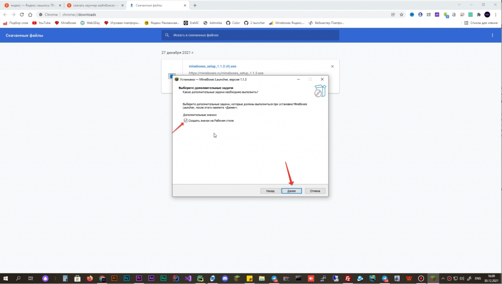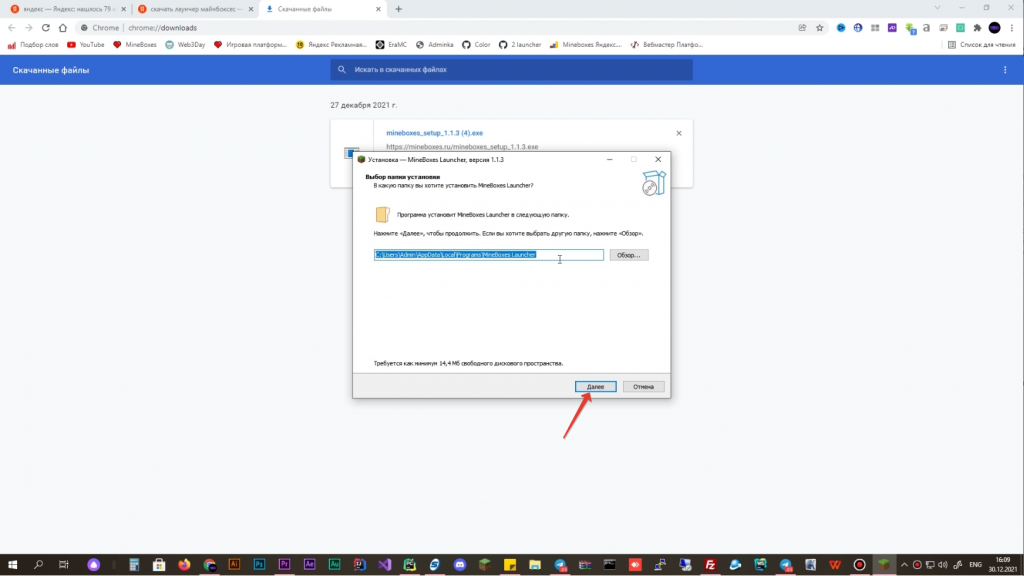 После того, как вы нажали кнопку запустить, открывается окно с установщиком Майнкрафт лаунчера от MineBoxes, там нужно просто нажимать далее в каждом новом окне: