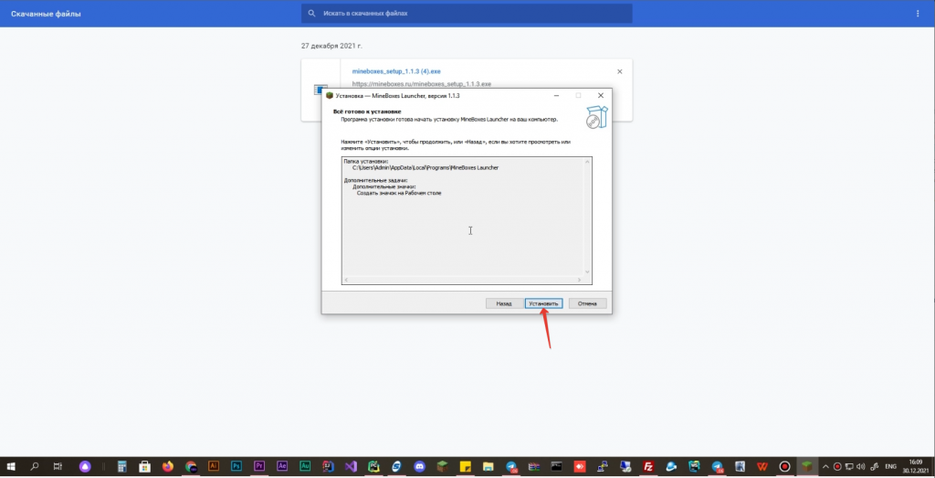 Кликаем на скачанный файл и следуем инструкциям установщика. Выбираем расположение для файла и нажимаем «Install».