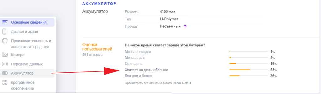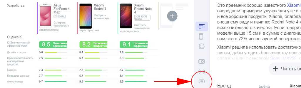 Смотрим отзывы. Перейдите на экран понравившегося телефона и нажмите на иконку аккумулятора, чтобы узнать все подробности о его работе непосредственно от сами пользователей.
