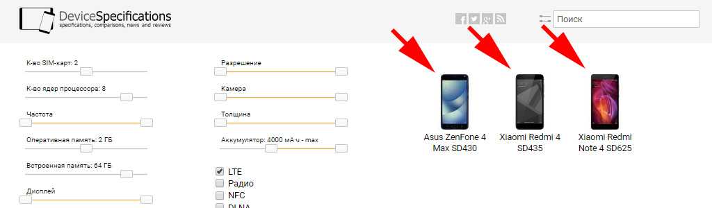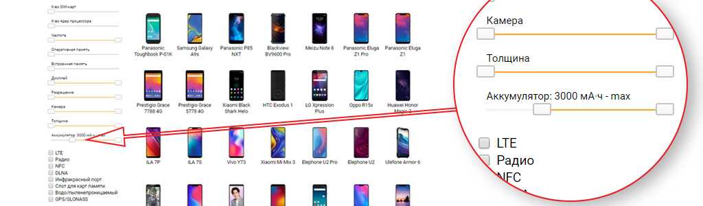 Отсеиваем лишнее. С помощью ползунков и галок выберите наиболее подходящий смартфон, стараясь отсеять ненужные и неинтересные модели.