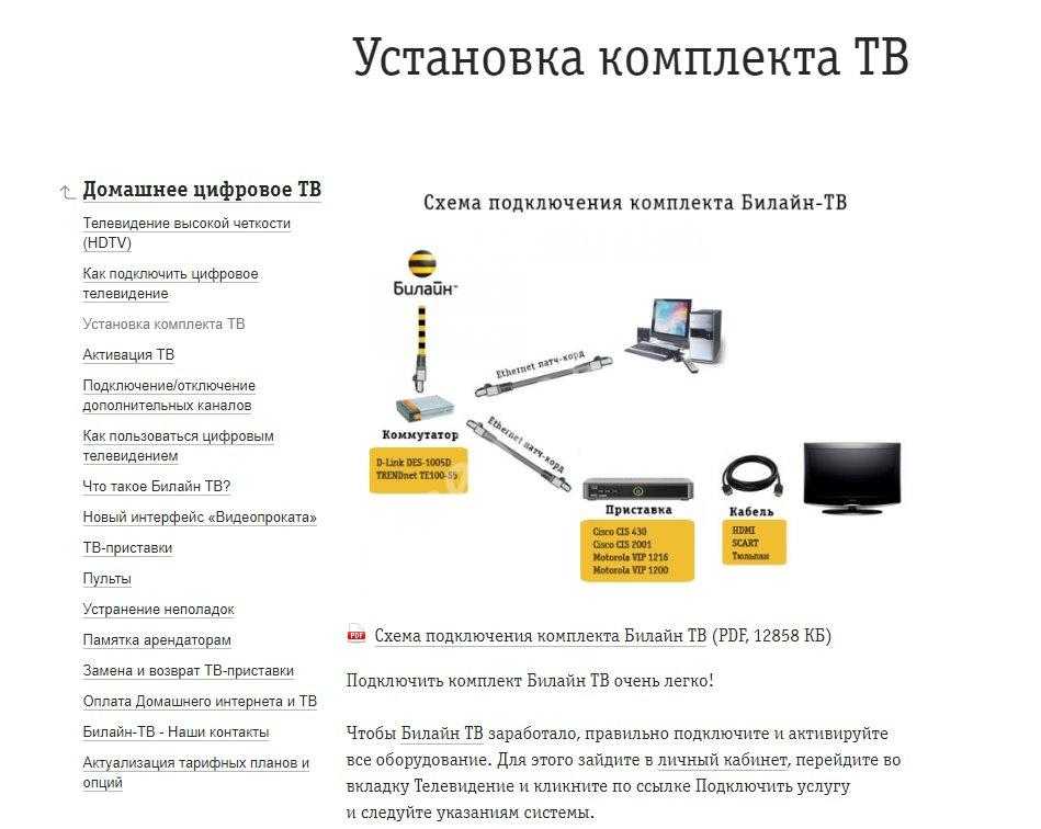 Для начала рассмотрим, как настроить ТВ приставку Билайн и подключить ее к телевизору с помощью кабеля.
