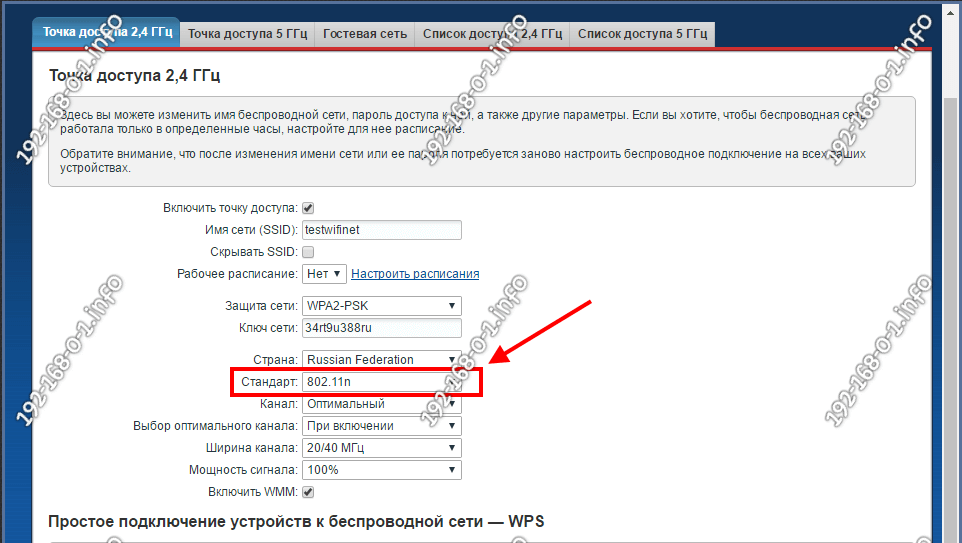 Если у Вас нет очень старых ноутбуков, планшетов или телефонов, использующих давно устаревшие стандарты 802.11b или 802.11g, то их лучше отключить в базовых настройках сети WiFi, оставив только 802.11n.