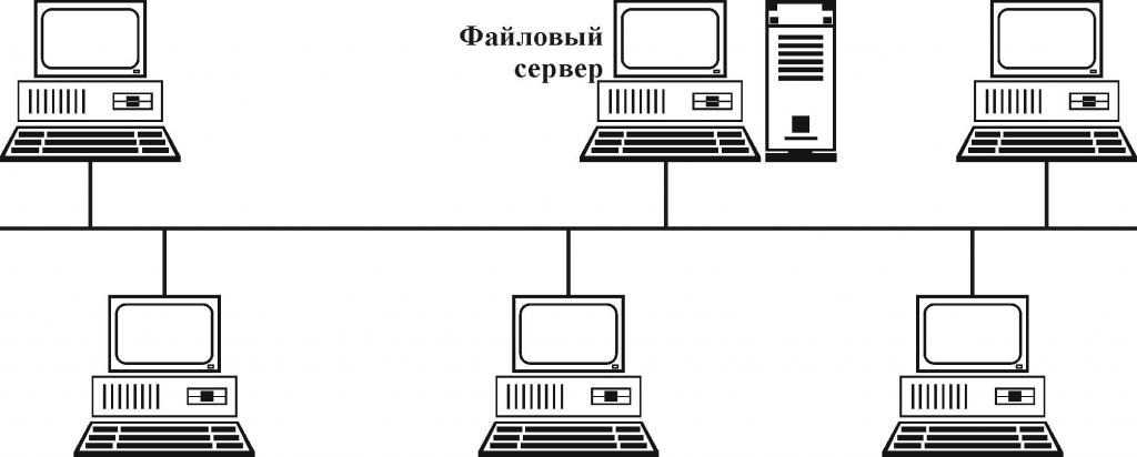 В этом случае все компьютеры подключаются к одному кабелю, который называется шиной данных. При этом пакет будет приниматься всеми компьютерами, которые подключены к данному сегменту сети.