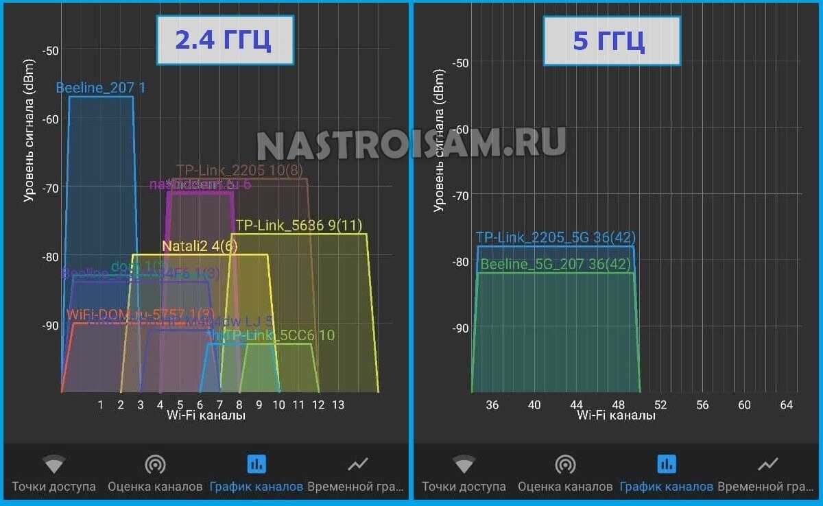 Интересный момент: все технические данные беспроводной сети «бегают» на 20 мегагерцах, а вот пользовательские будут использовать всю остальную полосу пропускания. Чем это грозит? На телефоне или планшете в соседней комнате индикатор будет показывать, что сеть есть, а трафик по ней нормально «бегать» не будет и Интернет будет недоступен.