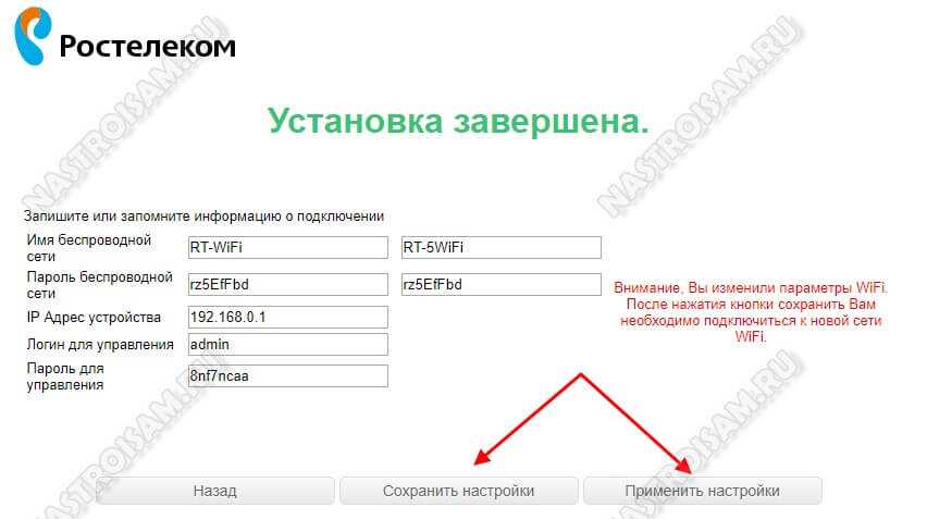 На этом базовая настройка роутера S1010 от Ростелеком завершена. Сохраняем и применяем новую конфигурацию.
