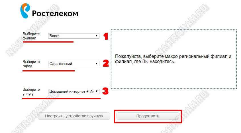 Первым шагом надо выбрать свой филиал, город и услуги, которые у Вас подключены: