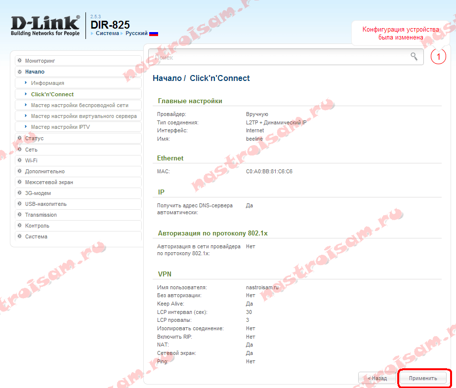 2. Подключение L2TP для Билайн (Домашний Интернет).