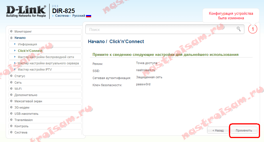 После сохранения изменений и, возможно, перезагрузки. Если её запросит точка доступа, вернитесь в раздел Setup и выполните такие действия:
