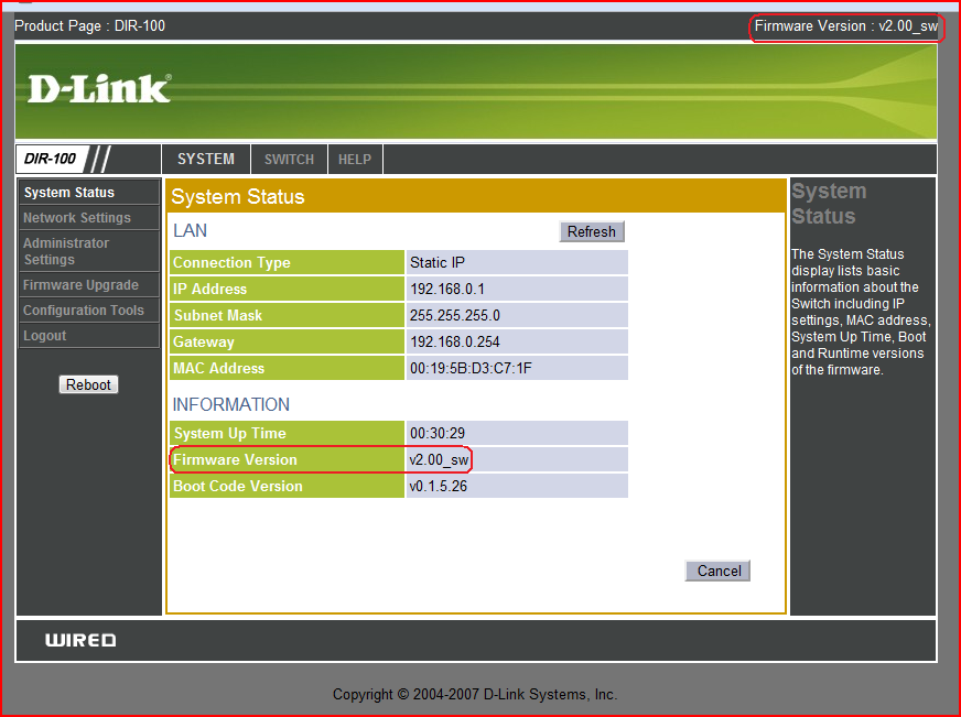 Версию прошивки можно проверить в меню устройства (для этого выбрать в меню System => System Status).