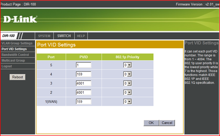 Идентификатор VLAN на порту WAN должен совпадать с идентификатором VLAN для сети Интернет.