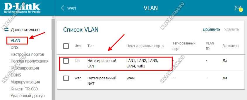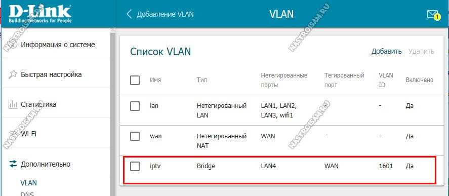 Настройка порта для IPTV осуществляется так же, как и на предыдущих версия микропрограммы. А именно — открываем раздел меню Дополнительно — VLAN.