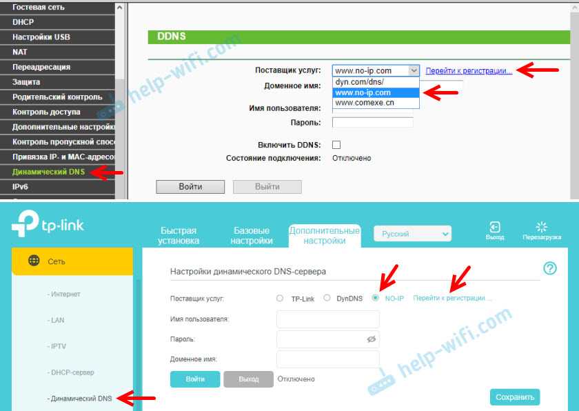 В начале статьи я уже писал, что сначала нам нужно выбрать сервис и зарегистрироваться в нем. Сервис нужно выбирать из списка доступных в своем роутере. Для этого заходим в настройки роутера TP-Link и переходим в раздел «Динамический DNS» (Dynamic DNS). На новых прошивках это вкладка: «Дополнительные настройки» — «Сеть» — «Динамический DNS».