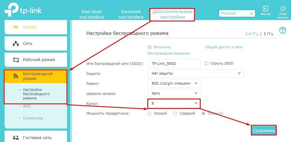 - На основном роутере нужно поставить статический канал в настройках Wi-Fi сети.