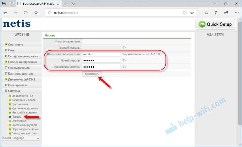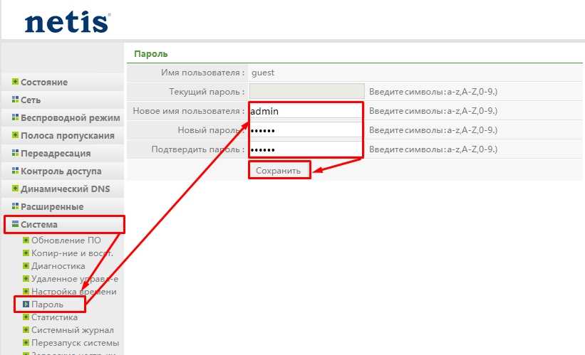 Также настоятельно рекомендуется установить пароль от этого Web-интерфейса, чтобы никто не смог поломать вам настройки. «Система» – «Пароль» – далее придумываем имя администратора и два раза вписываем ключ. Нажимаем «Сохранить».