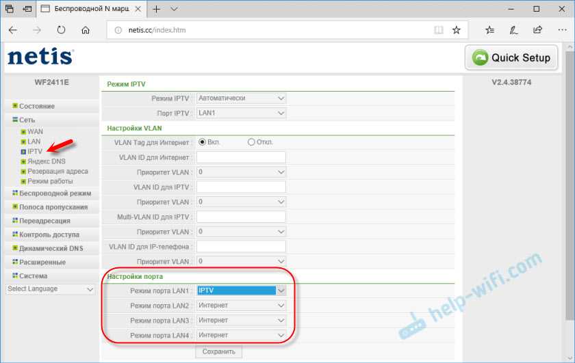 Если у вас провайдер предоставляет услугу цифрового телевидения, то настроить ее можно в разделе «Сеть» – «IPTV». Там можно выбрать один из 4x LAN портов и назначить его под IPTV. Или несколько портов. Ну и потом подключить в него приставку.
