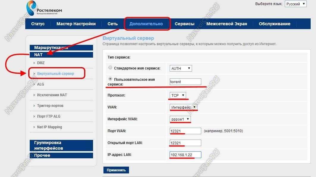Как пробросить порты Ростелеком роутер?