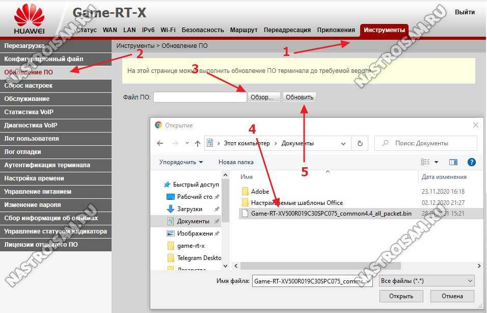 3. Нажать кнопку «Обзор» и выбрать файл с прошивкой игрового роутера. 4. Нажать кнопку «Обновить» и дождаться полной перезагрузки устройства.