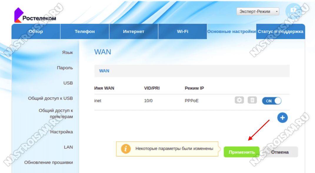 На этом базовая настройка роутера S1010 от Ростелеком завершена. Сохраняем и применяем новую конфигурацию.