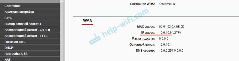 Нужно для начала зайти в настройки своего Wi-Fi роутера, и прямо на главной странице (обычно, это»Карта сети», или «Состояние»), или в разделе WAN (Интернет) посмотреть WAN IP-адрес, который присвоен роутеру интернет-провайдером. Вот, например, на роутере TP-Link:
