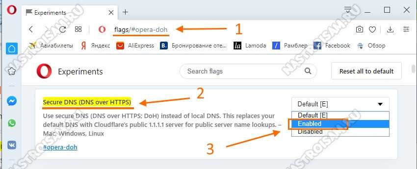 Ставим ему значение Enable и перезапускаем Оперу. После этого браузер будет использовать ДНС-сервер Cloudflare 1.1.1.1 через защифрованное соединение.