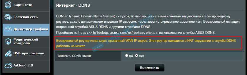 Некоторые маршрутизаторы могут сами определять, какой IP-адрес выдает провайдер. Приватный (серый), или публичный (белый). Так, например, на роутерах ASUS, если адрес серый, то в разделе с настройками DDNS отображается следующее предупреждение: «Беспроводной роутер использует приватный WAN IP адрес. Этот роутер находится в NAT окружении и служба DDNS работать не может».