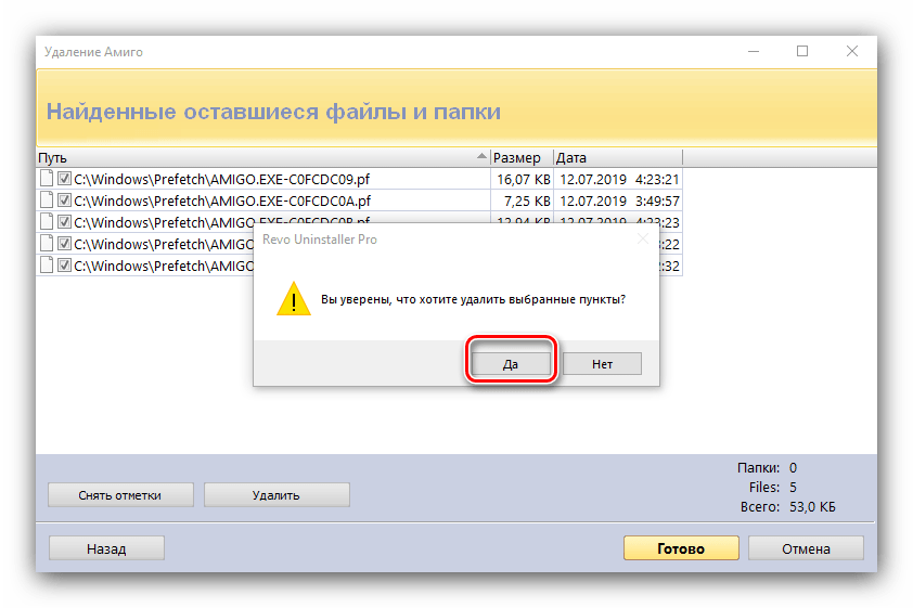 Готово – Амиго будет удалён. Окно Revo Uninstaller можно закрывать.