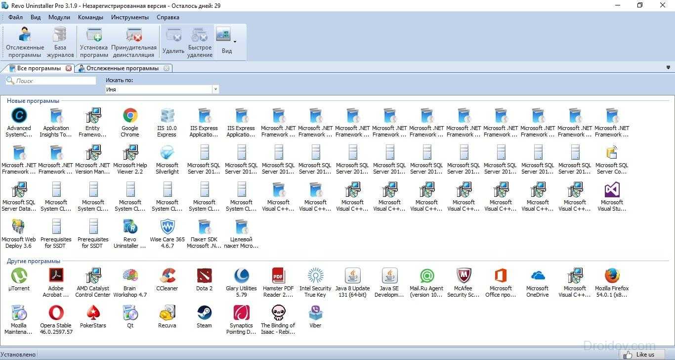 Я несколько раз повторил, что мне не нравится удаление программ через панель управления. Для удаления программ, есть специальные программы деинсталляторы. Итак, открываем программу «Revo Uninstaller»