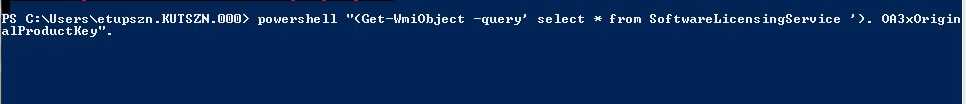 - Открыть строку запроса, ввести значение: powershell «(Get-WmiObject -query‘ select * from SoftwareLicensingService ’). OA3xOriginalProductKey».