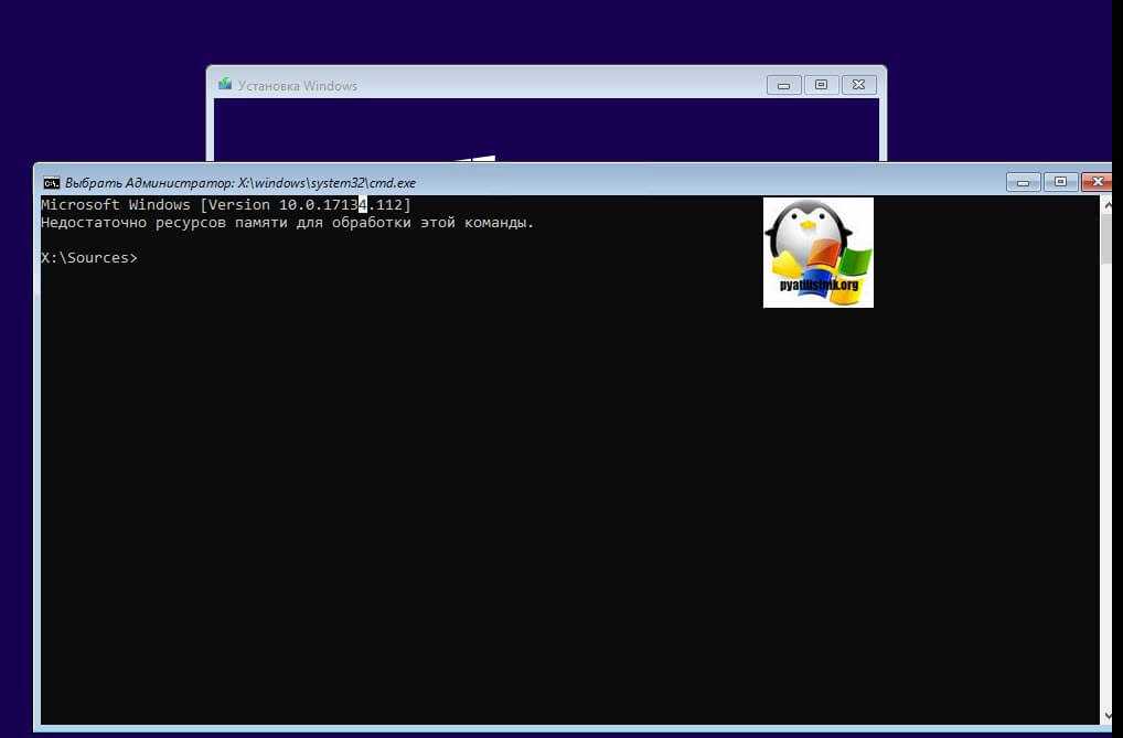 - выходим на командную строку, зажав Shift + F10 после появления окна Установка Windows