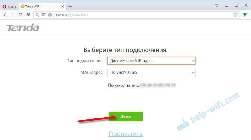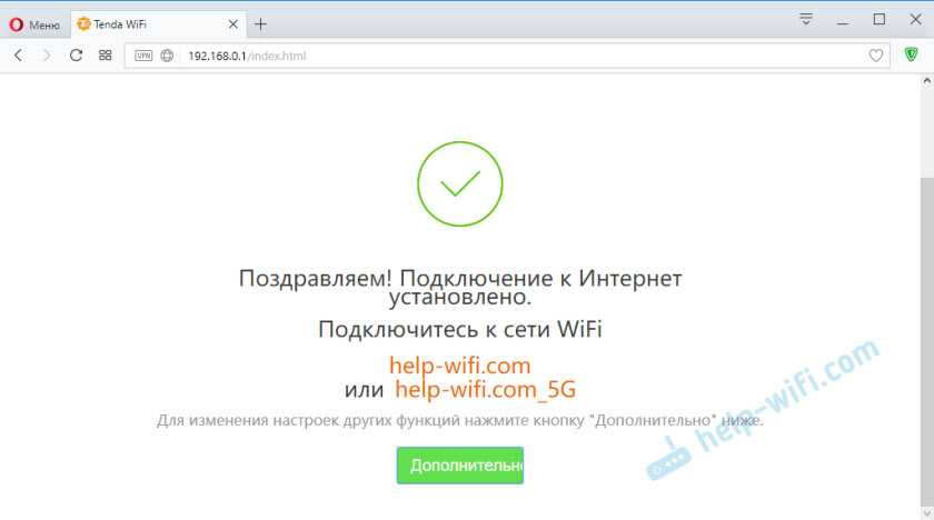 Теперь можно переходить в настройки роутера Tenda через веб-обозреватель.