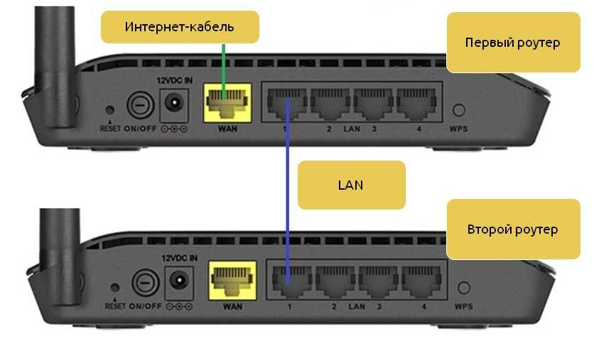 Оба прибора подключаются друг к другу протягиванием сетевого провода от LAN разъема на первом роутере (в Домашней сети) ко второму. При этом таким же кабелем можно соединить устройства со вторым роутером для пользования интернетом.