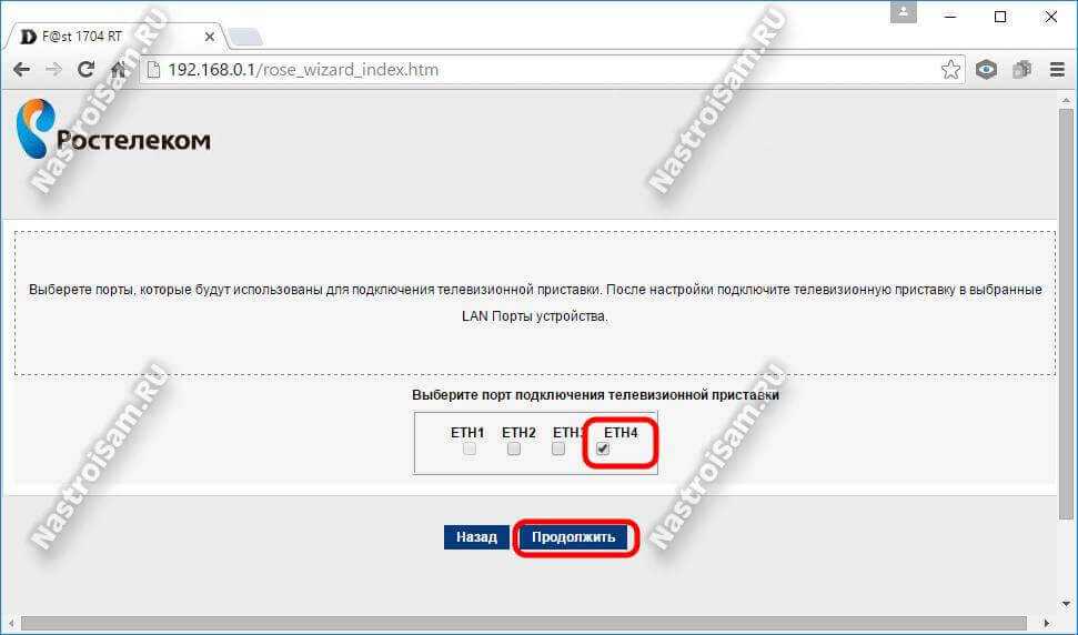 Третий шаг — выбор галочкой порта для IPTV-приставки: