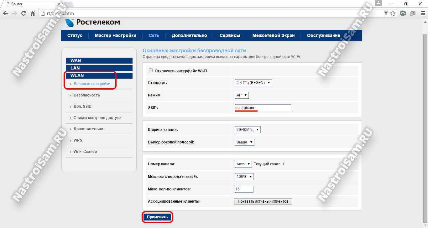 - назначить имя сети (SSID) – любое слово или набор символов латиницей;