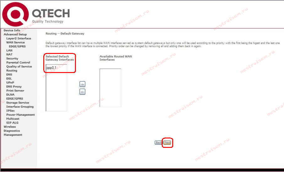 Тут тоже следим чтобы интерфейс PPP был в поле слева. Нажимаем кнопку Next.