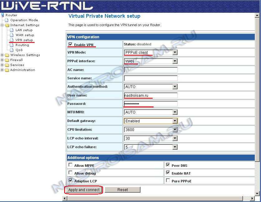 Настройка PPPoE на WIVE-NG-RTNL для Ростелеком, Дом.ru и ТТК.