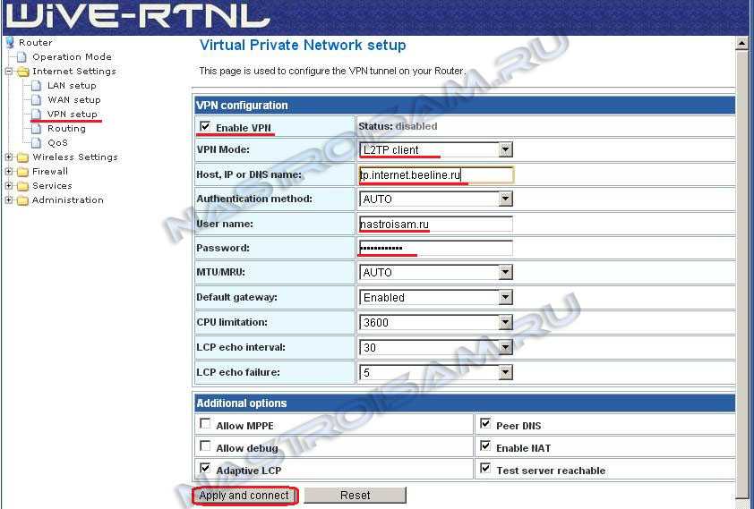 Настройка VPN (L2TP) на WIVE-NG-RTNL для Билайн.