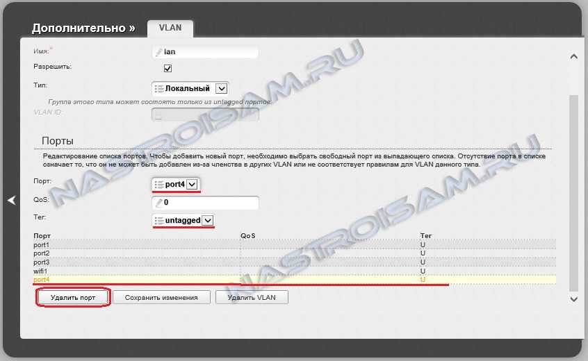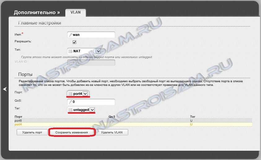 Тут в поле Порт избираем выделенный под STB-приставку 4-й порт, в поле Тег ставим значение untagged. Жмем кнопку Сохранить конфигурации. В итоге в таблице VLAN должно получиться так:
