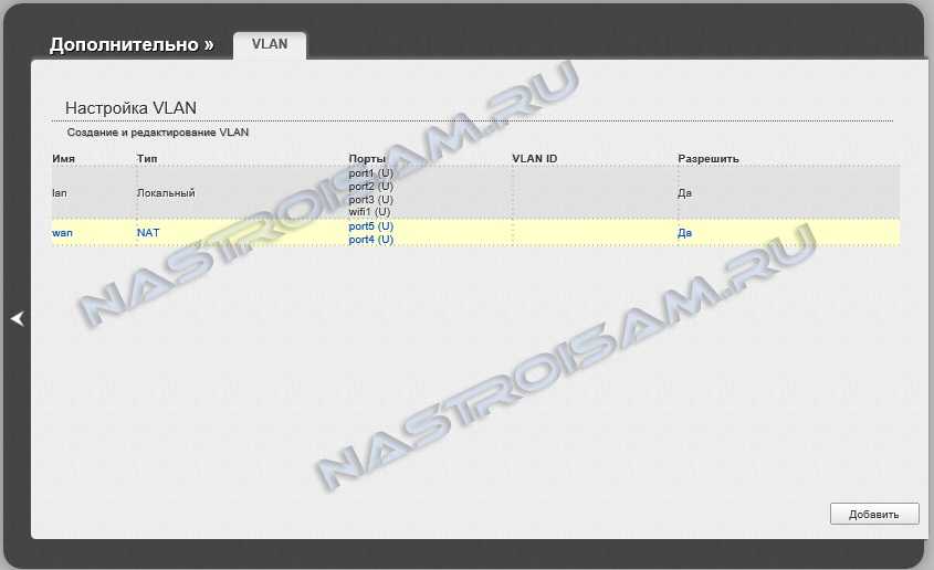 2 вариант. IPTV-трафик приходит в тегированном виде, т.е. употребляются VLAN — к примеру, цифровое телевидение Ростелеком в Саратовской области либо в Татарстане. В данном случае жмем в правом нижнем углу окна веб-интерфейса кнопку Добавить. Раскроется окно сотворения VLAN: