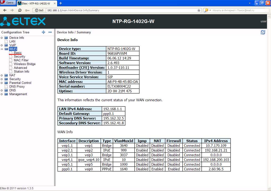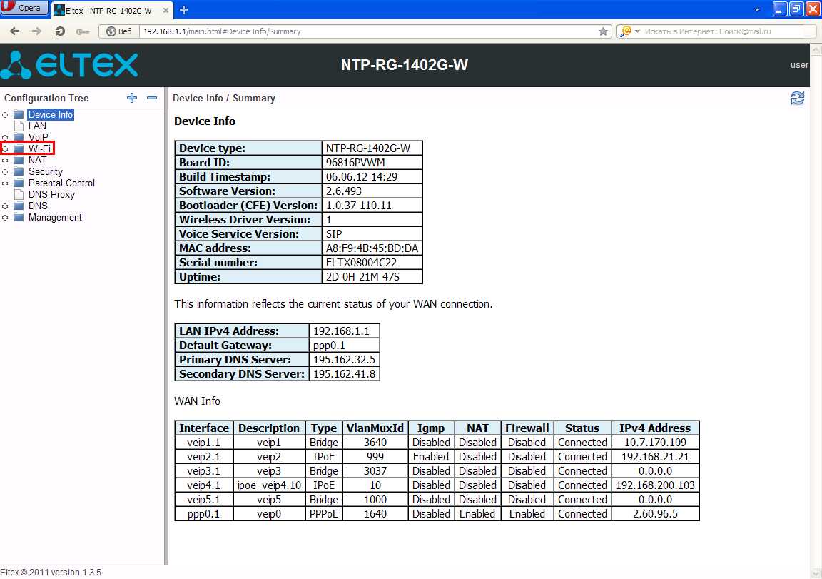 Все основные параметры подключения к сети Интернет находятся в разделе веб-интерфейса под названием «WAN» или «Интернет»: