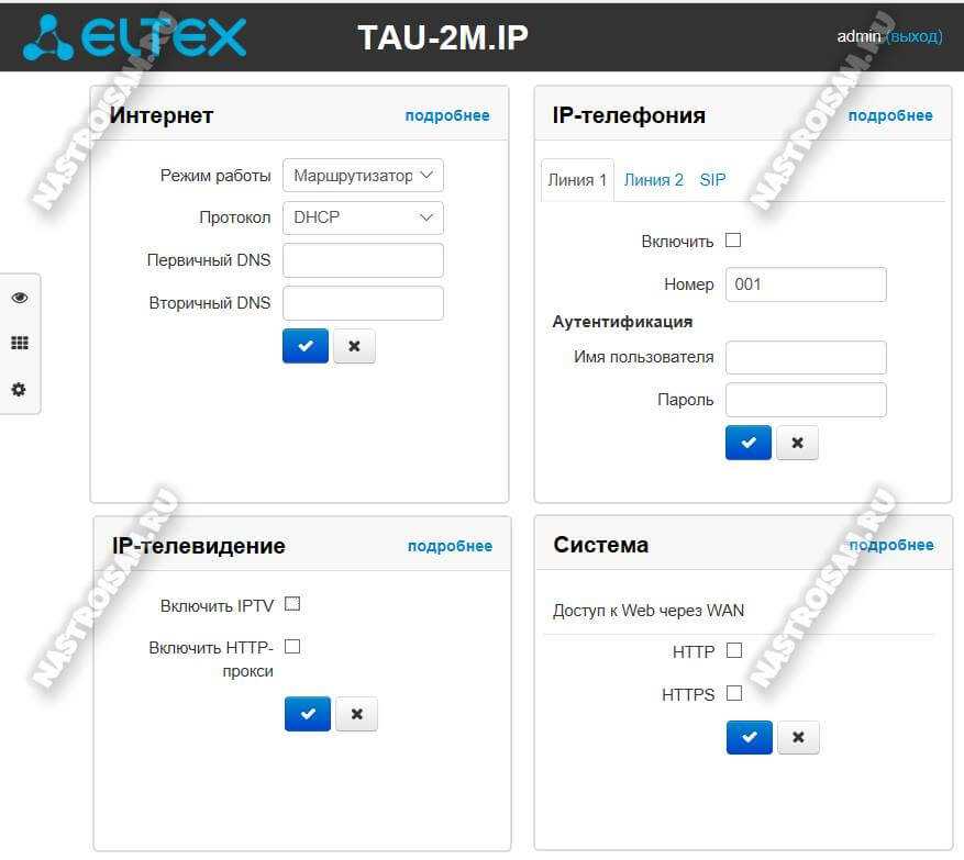 После того, как настройка Eltex TAU 2M.IP завершена, я настоятельно рекомендую изменить пароль на доступ к настройкам голосового шлюза.
