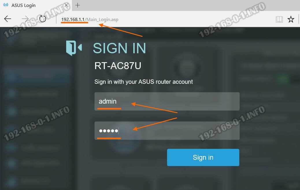 IP-адрес маршрутизатора ASUS RT-N56U в локальной сети обычный для устройств этого производителя — 192.168.1.1, логин — admin, заводской пароль — admin.