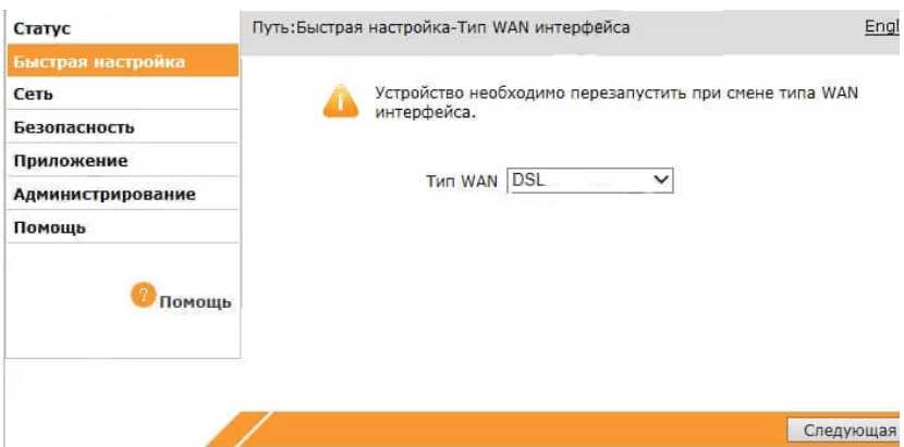 На следующей странице нужно выбрать тип WAN-интерфейса: