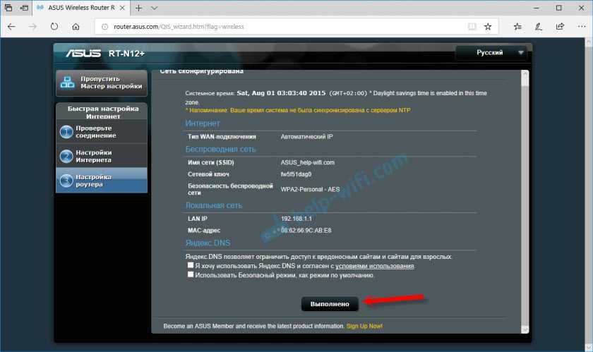 - Настройка Asus RT-N12 с помощью мастера быстрой настройки