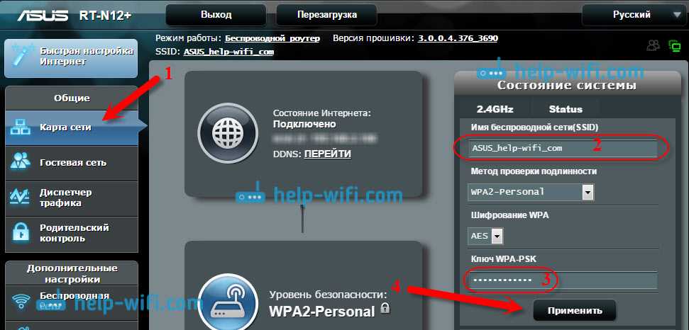 Дальше нужно настроить Wi-Fi сеть Asus RT-N12E. Желательно поменять имя WI-FI сети и обязательно установить пароль на эту сеть. Пароль рекомендую сразу куда-то записать.