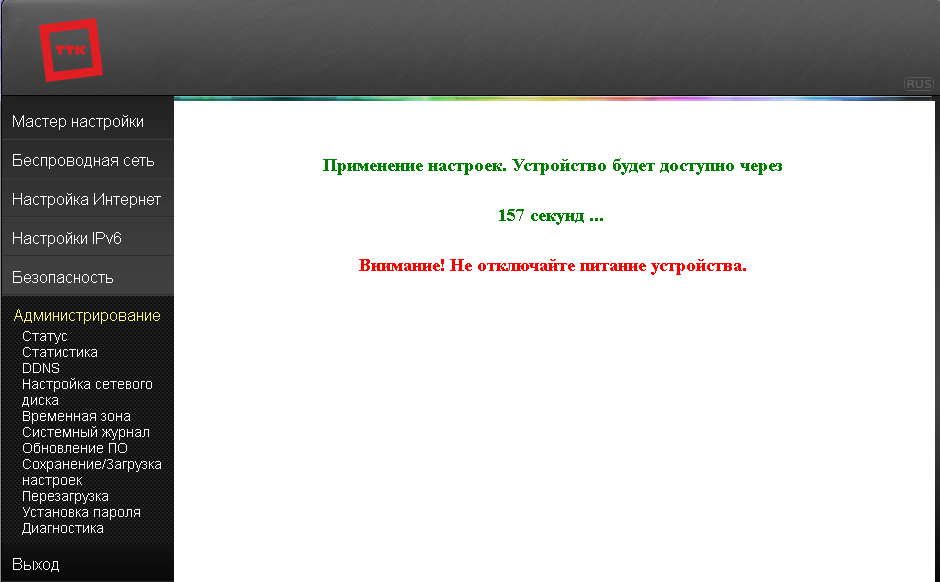 5. Дождаться обновления прошивки на роутере. Во время процесса обновления нельзя отключать питание устройства. После завершения процесса устройство перезагрузится автоматически и будет доступно для дальнейшей настройки.