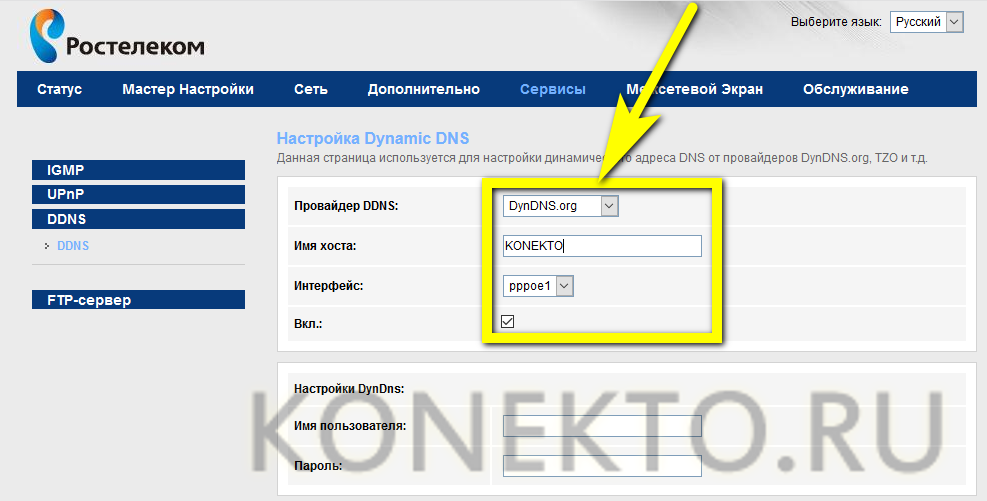 А на Dynamic DNS — создать собственный хост с динамическим DNS.