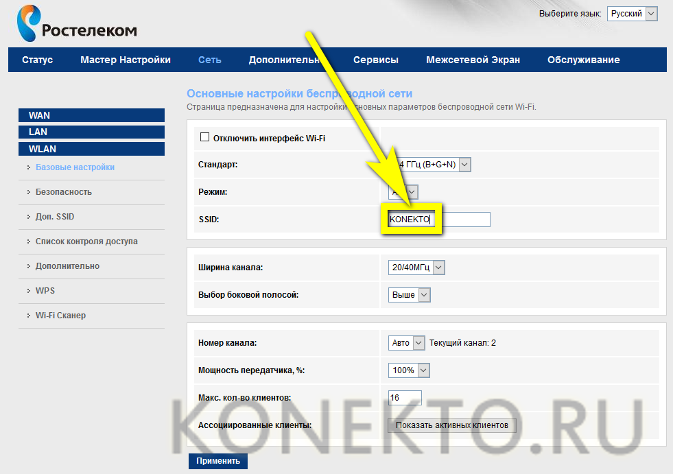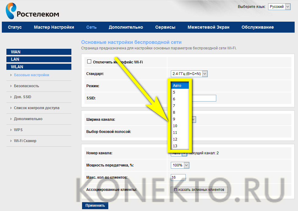 Чтобы настроить раздачу Wi-Fi на роутере от Ростелекома в ручном режиме, следует: