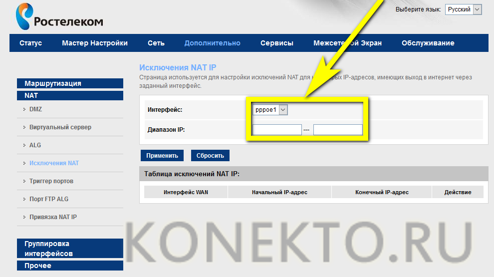 В разделе «Дополнительно» на вкладке «Исключения NAT» владелец устройства сможет перейти к настройкам исключений — сетевых адресов, которые не смогут подключаться к роутеру.