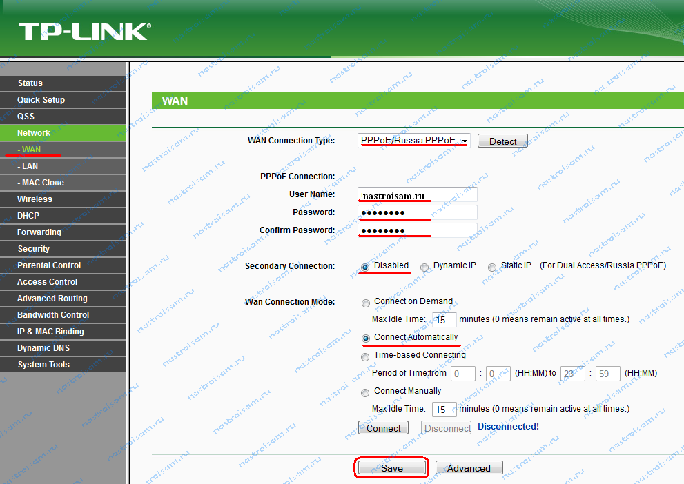 Шаг третий в настройке роутера TP-LINK без диска