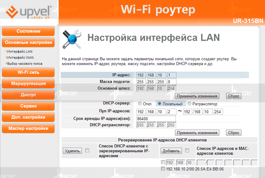 После чего мы можем изменить основной IP адрес роутера Upvel со 192.168.10.1 на какое-то другое значение. Если вы не знаете, что это или этот момент вам не принципиален, то пропускаем